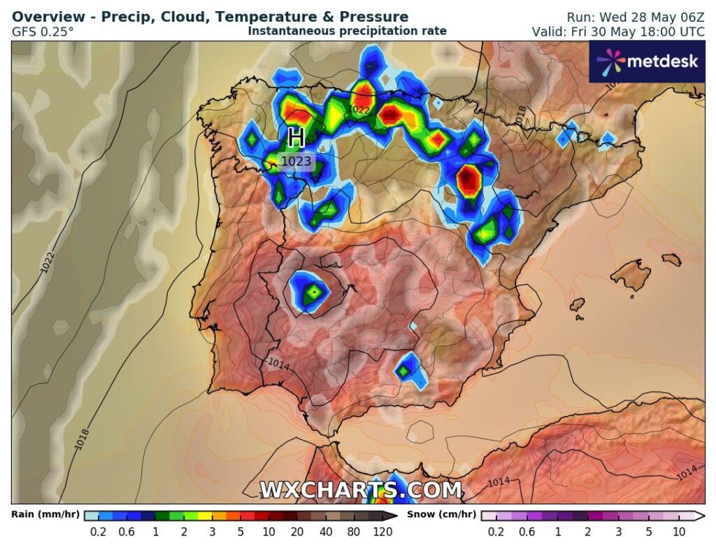 Ao longo do dia de quinta feira, poderão surgir, de forma pontual, núcleos convectivos com trovoada e aguaceiros isolados. Esta instabilidade será passageira e rápida, e será mais provável de ocorrer no Ribatejo e nas montanhas do Norte e Centro.