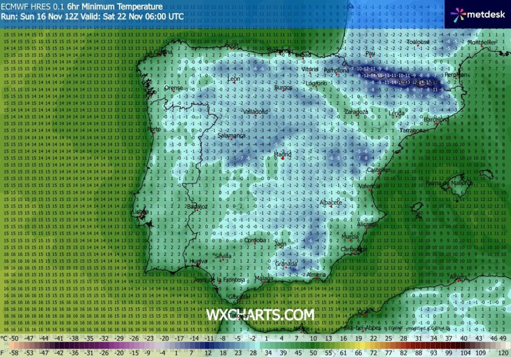 Nesta segunda-feira ainda sentiremos alguma influência remanescente da depressão “Claudia”, com possibilidade de aguaceiros dispersos, embora predominem longos períodos de sol. A partir de terça-feira, e de forma mais marcada na quarta, o tempo tornar-se-á seco e muito soalheiro de Norte a Sul, com o céu geralmente limpo. Com a chegada de ar mais frio, as temperaturas vão descer progressivamente ao longo da semana, sobretudo durante a noite. Este padrão mais frio deverá trazer as primeiras geadas mais sérias da temporada, especialmente no interior do país.