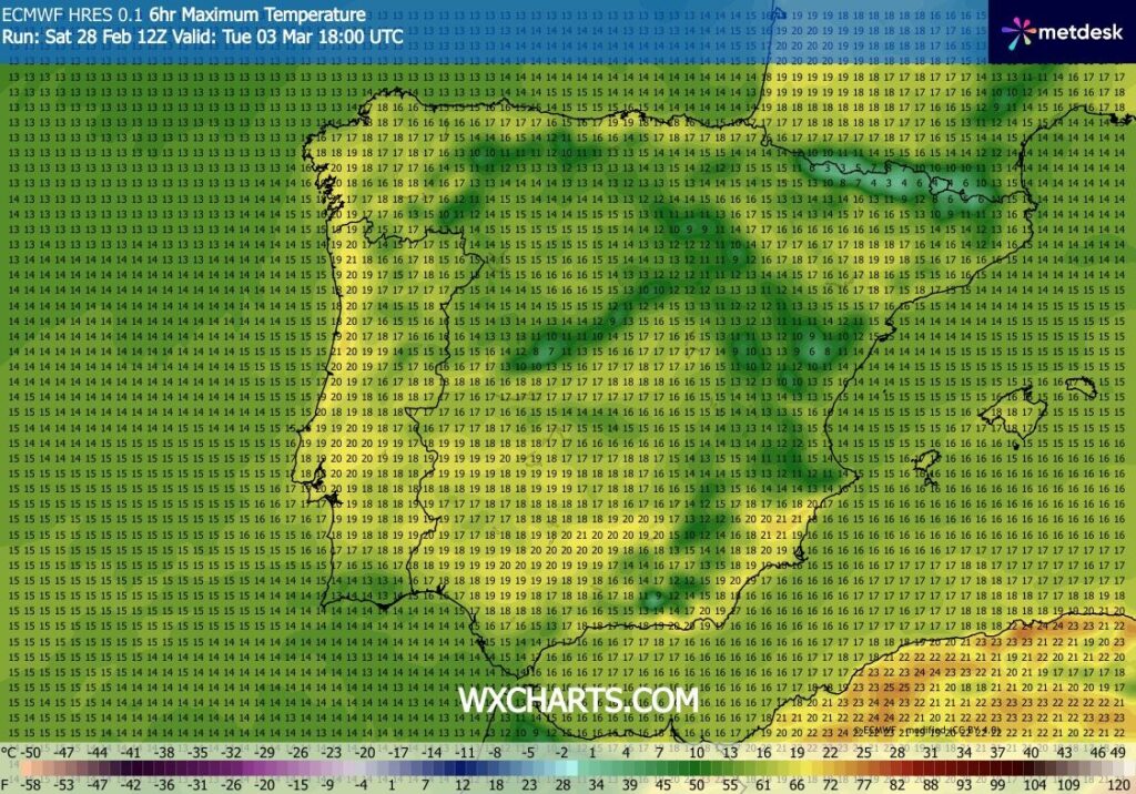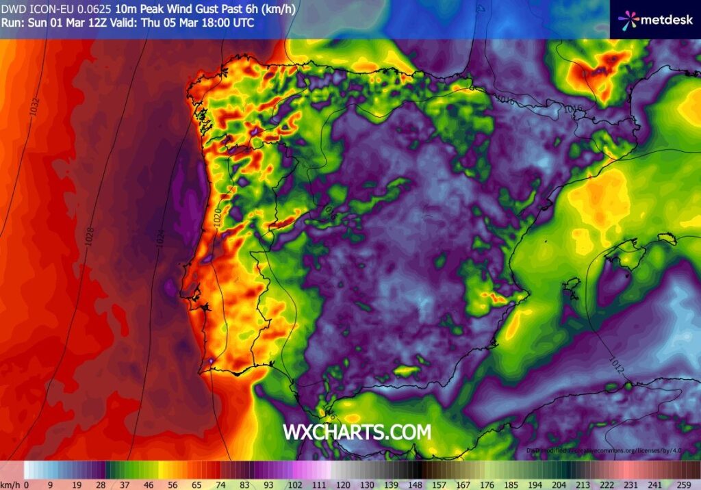 Para esta semana é esperada uma grande variabilidade das condições atmosféricas, num padrão típico de Março, em que haverá dias de sol e algumas nuvens com temperaturas amenas alternando com dias de aguaceiros, possibilidade de trovoada e temperaturas mais baixas. De destacar também a elevada concentração de poeiras vindas do norte de África, em especial entre os dias 2 e 5 de Março, que vão provocar má qualidade do ar.