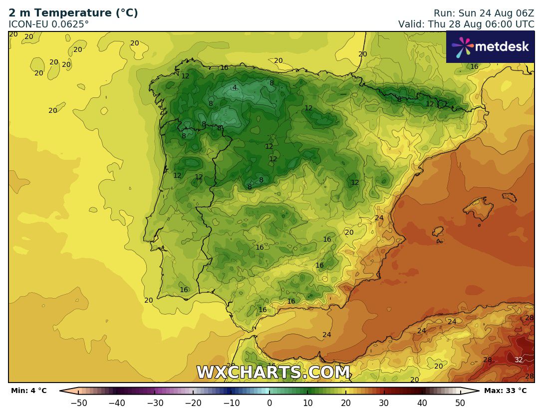 Agosto termina com temperaturas geralmente dentro ou abaixo da média e alguma chuva mais a…