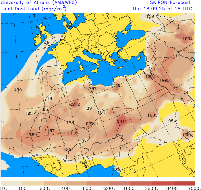 Impulsionadas por uma mudança no fluxo atmosférico para sul, espera-se o regresso de poeiras vindas…